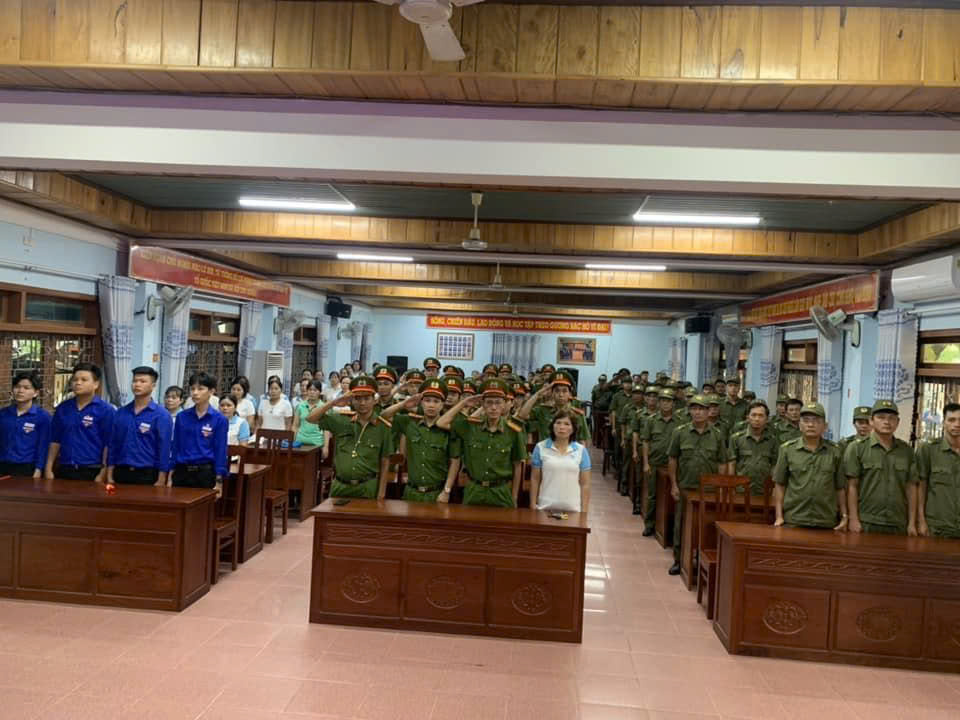 Ngay từ sáng sớm, đông đảo cán bộ, chiến sĩ, đoàn viên, hội viên đã có mặt tại UBND xã để tham gia các hoạt động đồng hành. Đúng 6 giờ, toàn bộ người tham gia đồng loạt hát quốc ca, tạo nên không khí trang nghiêm, thiêng liêng, khơi dậy niềm tự hào dân tộc.