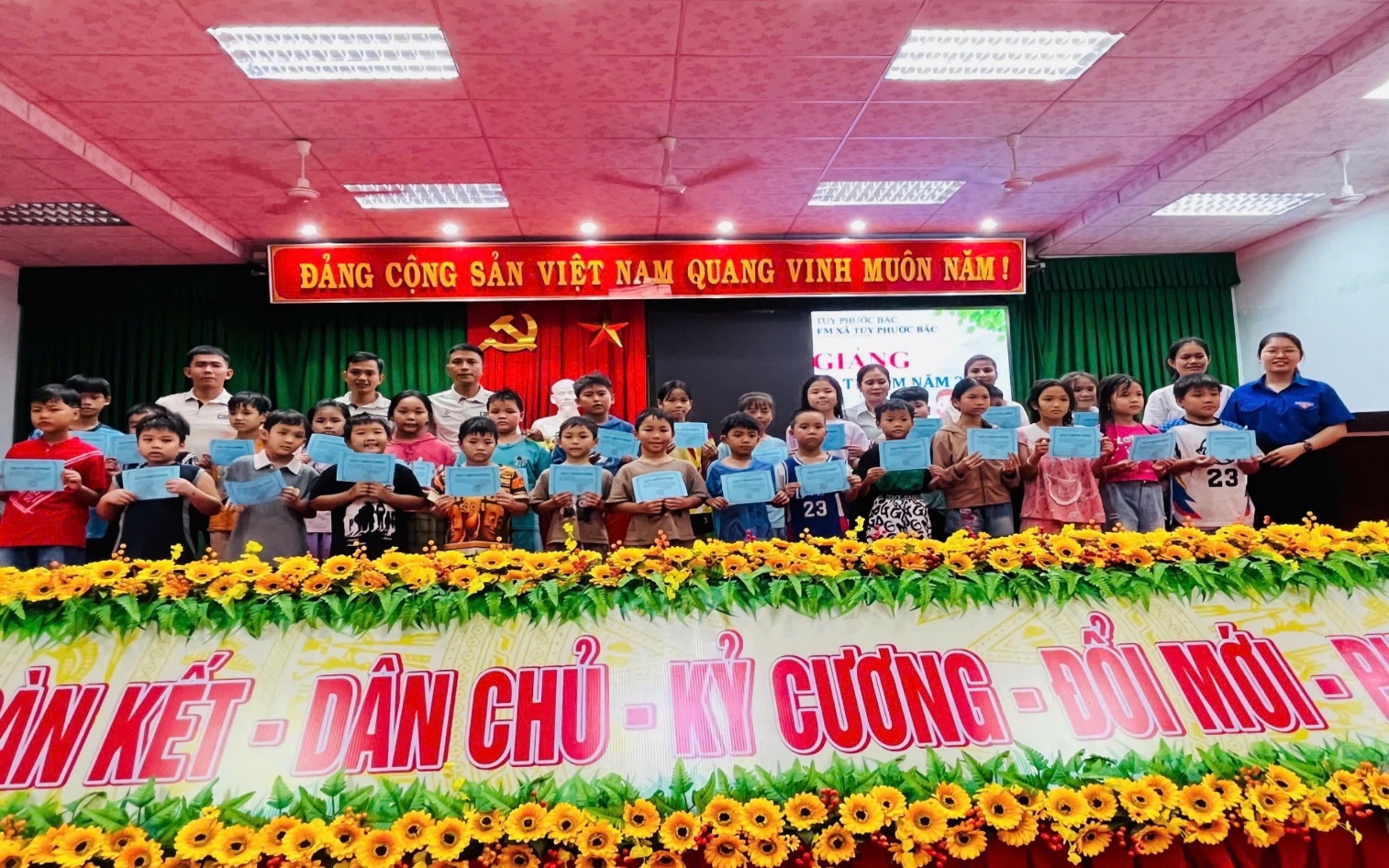 Tham dự có bà Nguyễn Thị Ngọc Hiếu - Phó Bí thư Đoàn xã, lãnh đạo Trường Tiểu học số 1 và Tiểu học số 2 Phước Hưng, cùng 35 em học sinh từ 9 tuổi đến dưới 11 tuổi của 2 trường.