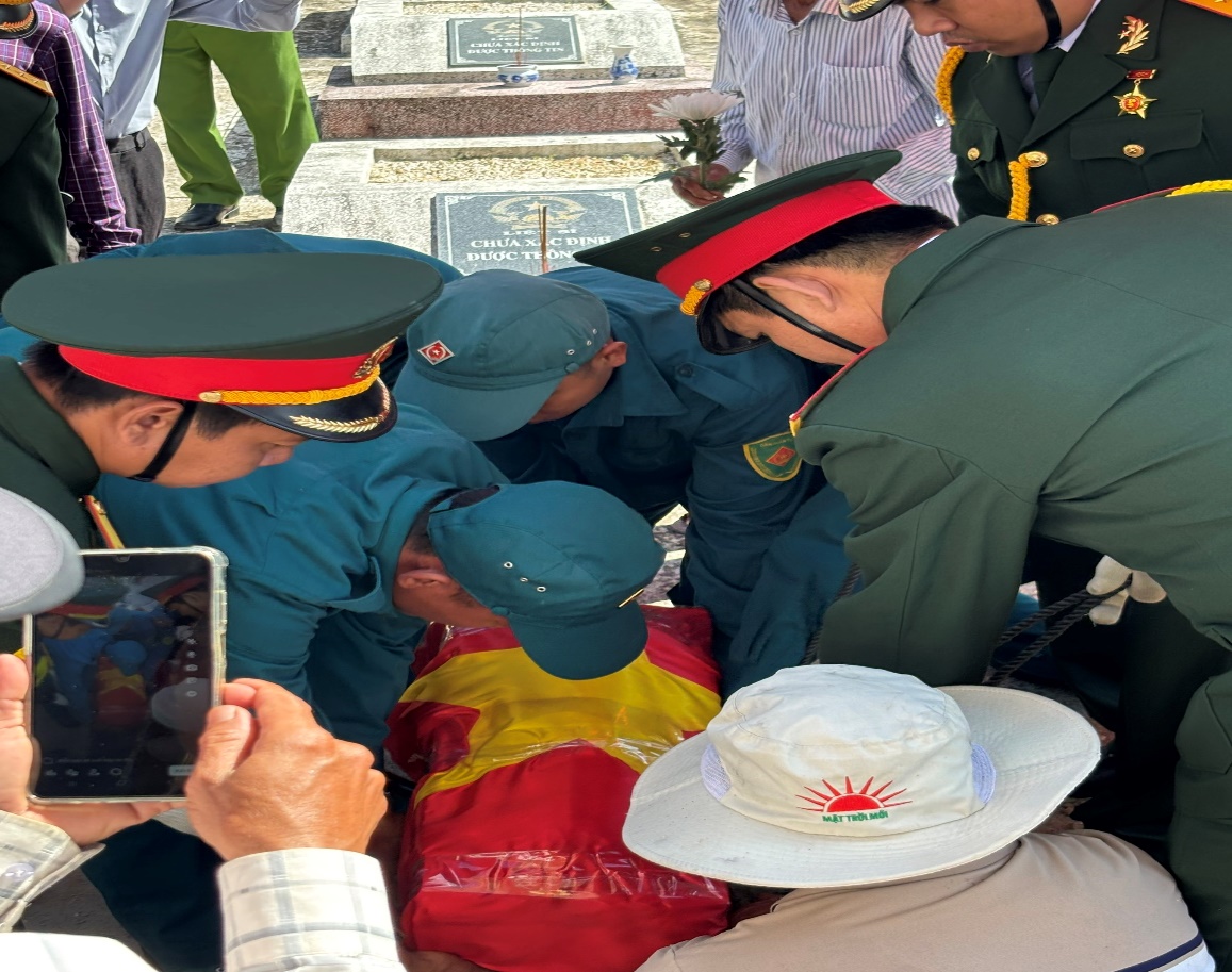 Nghi thức an táng hài cốt liệt sĩ Nguyễn Đình Quý tại NTLS xã
