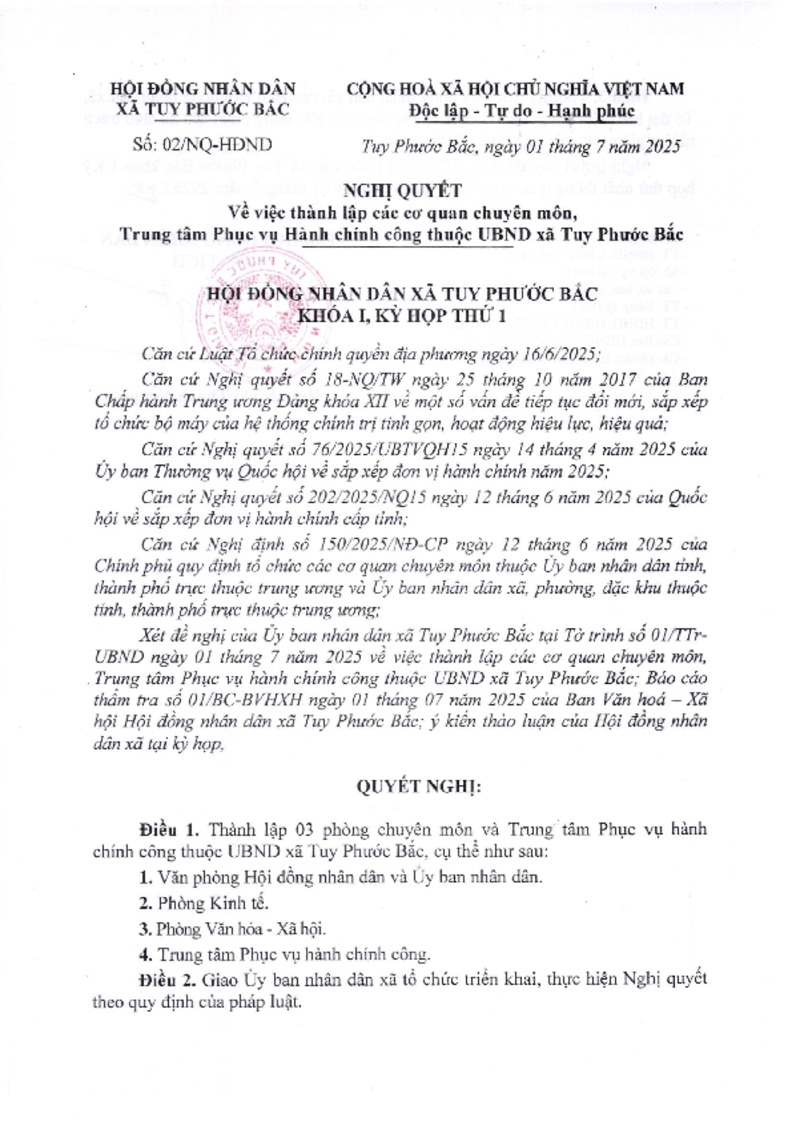 Số hiệu | 02/NQ-HĐND | Cơ quan ban hành | HĐND xã Tuy Phước Bắc |